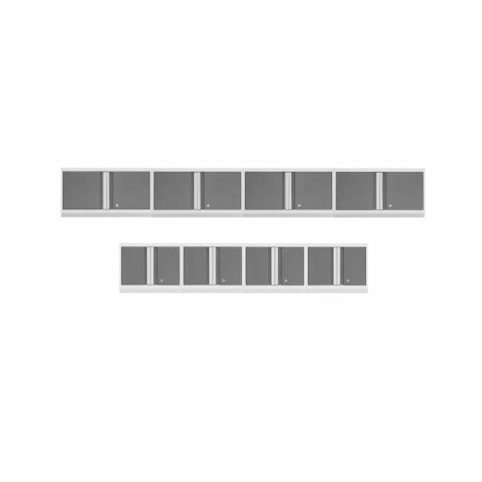 Maximize the wall storage space in your garage while keeping your gear organized, with Bold Series Wall Cabinets. The spacious cabinet interior lets you get all the small items in your garage off the floor and tucked away, out of sight. Lockable reinforced steel doors feature integrated full-length handles for a modern look, that gives more clearance in front of the cabinet. Doors have a wide swing, allowing for easier access to your tools and belongings, with premium hinges that hold up to frequent use. Welded steel frames support up to 100 lbs. of weight per cabinet, and are pre-drilled for quick and simple installation into wood studs, using the included hardware. Our Wall Cabinets are easy to keep clean, with a durable paint finish that protects against scuffs and wear, with resistance to chemicals and staining. The included light valance allows you to neatly hide undermount LED Lighting, for a fully illuminated workspace. (LED Lighting sold separately)