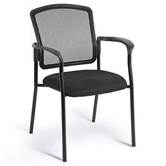 The Dakota2 Mesh Back Stacking Guest Chair is a great chair that can be used in break rooms, waiting areas, exam rooms or just about anywhere. A breathable mesh back allows guests to your workplace to feel cool and relaxed. Sturdy legs and a steel frame provide a stable framework for long-term use. This chair can also stack four chairs high on the floor. The chair comes in a Dove Black fabric 5806 seat and a black mesh PM01 back. The frame, arms and legs also come in a black finish. This chair also gives you the option to add fixed arms.