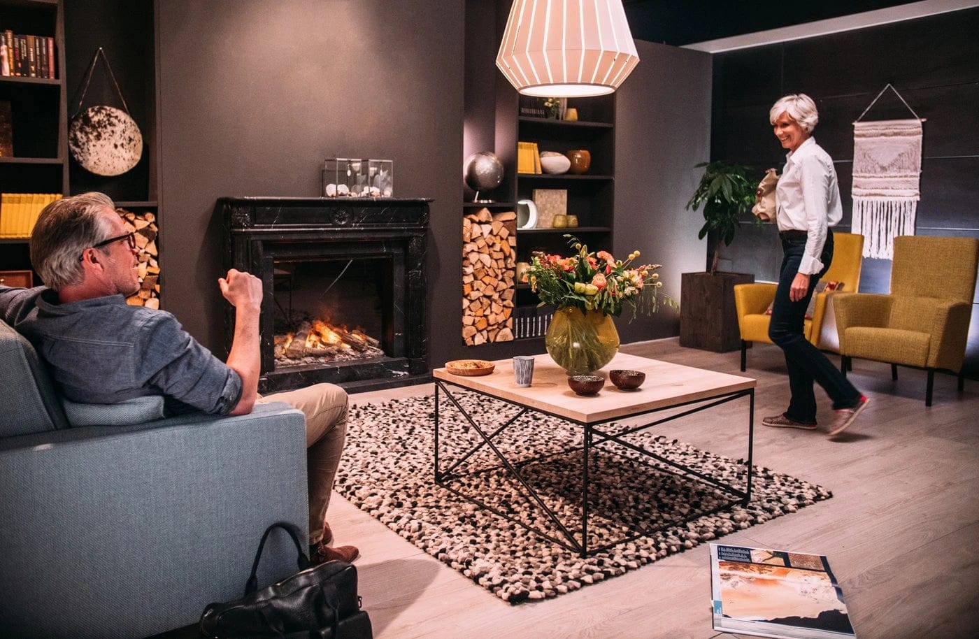 The new, electric e-MatriX fires are exactly what you would expect from a fire and they're electric. Built in to your style, even where a gas fire or a wood fire is impossible. Of course you can enjoy the typical Faber flame effect. The fire and sound created by water mist and electricity. You don't need a gas connection or a flue. This makes the new e-MatriX stylish, sustainable and smart.