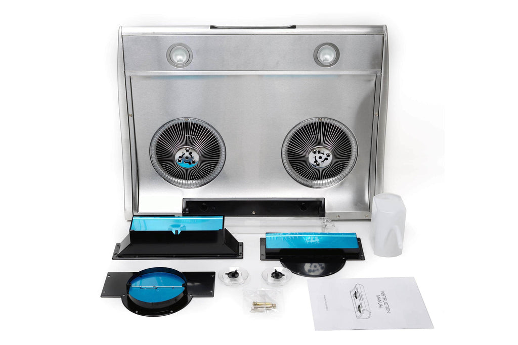 • Includes: Oil tray (1), grease catcher (2), water kettle (1), top 6” round exhaust adapter (1), top 3-1/4” x 10” rectangular exhaust adapter (1), and rear 3-1/4” x 10” rectangular exhaust adapter (1)