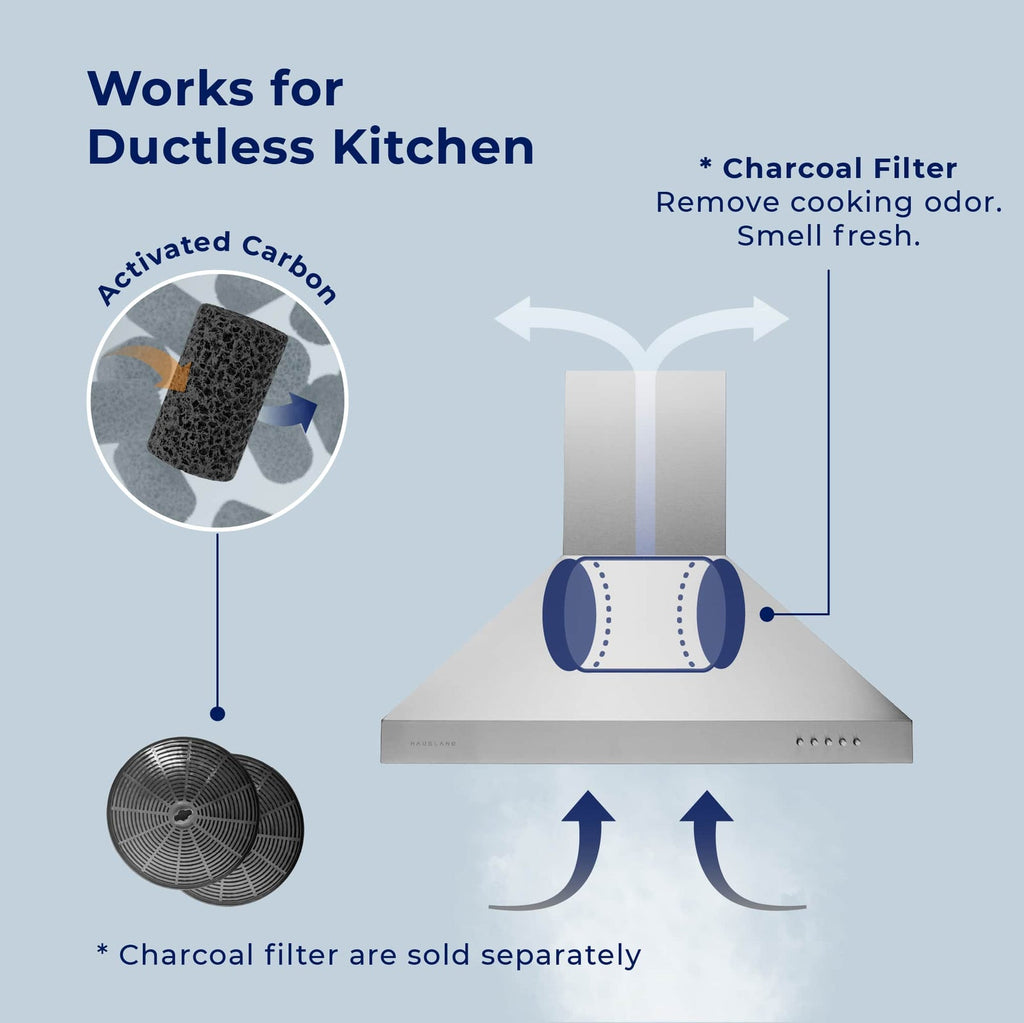 • Convert to ductless with our effective charcoal filters (sold separately). These filters trap grease particles from fumes and deodorize cooking smells