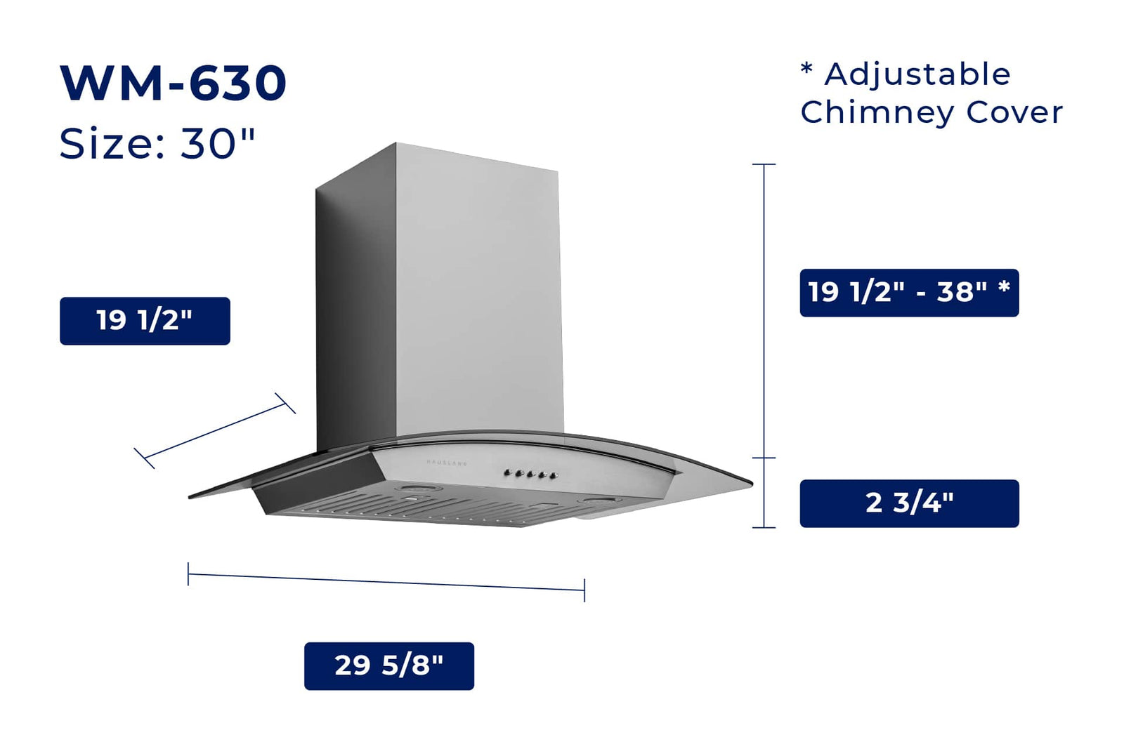 Hauslane 30-Inch Wall Mount Range Hood with Tempered Glass in Stainless Steel (WM-630SS-30)