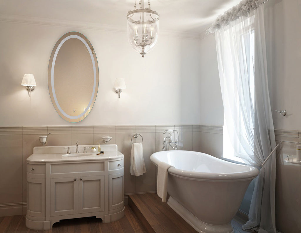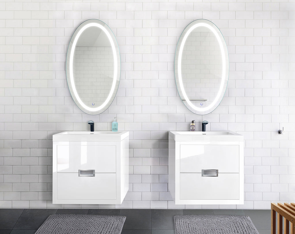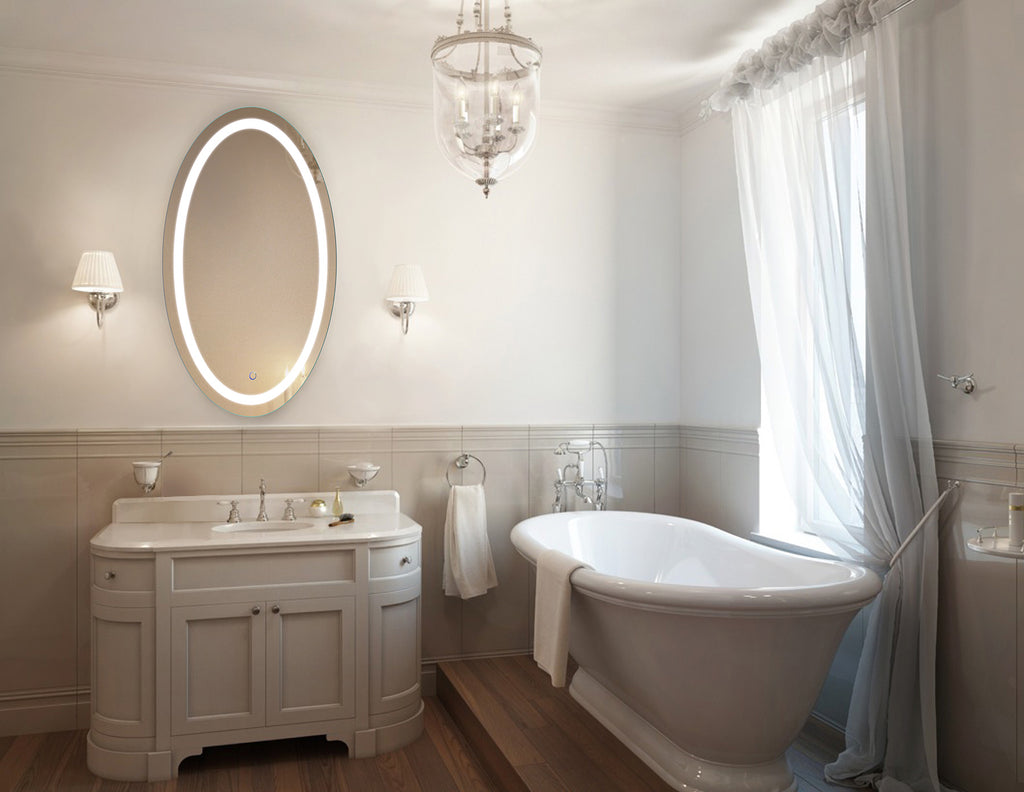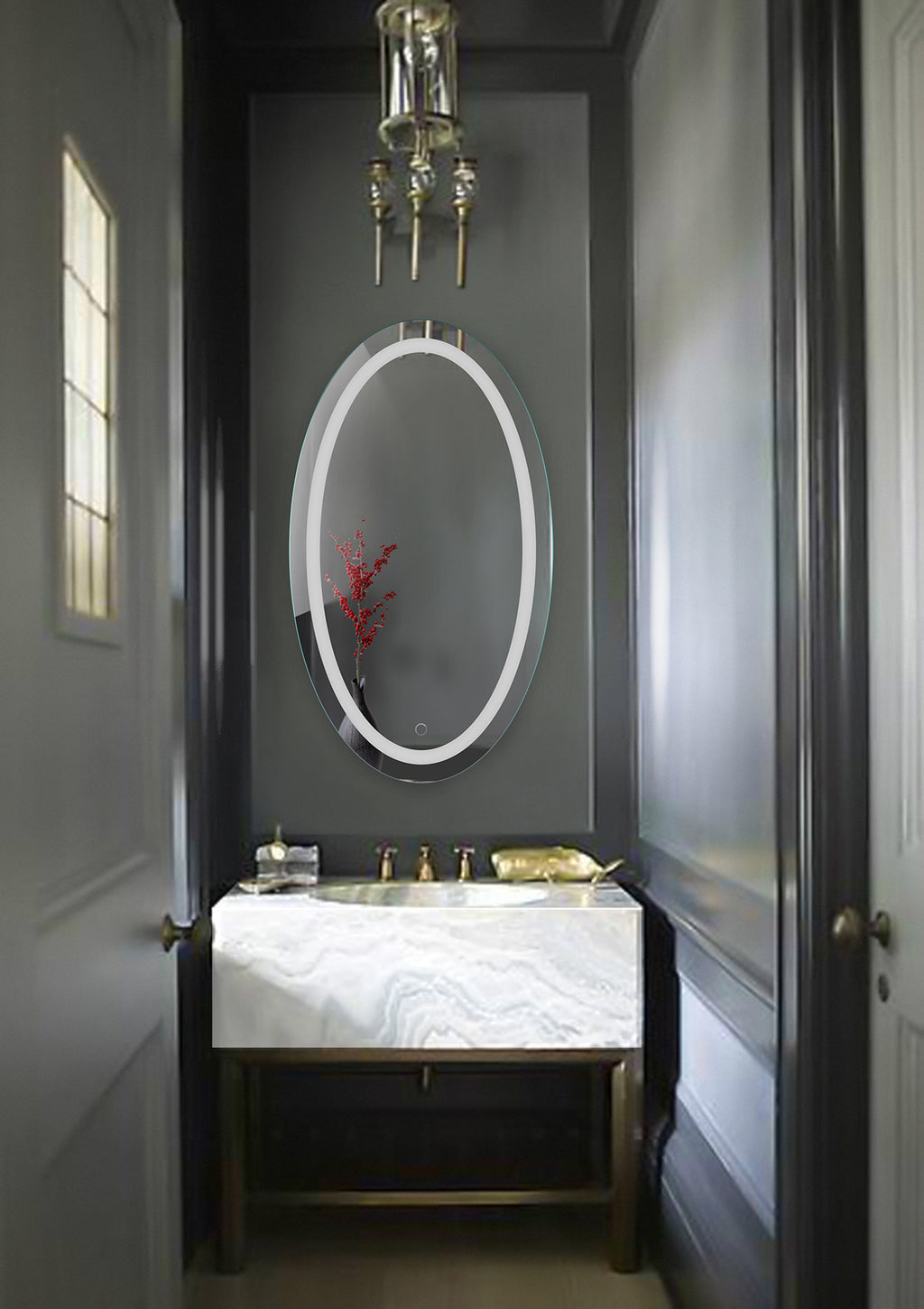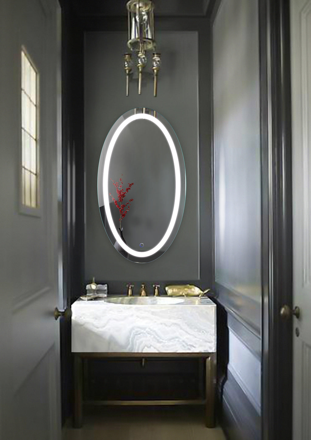 The Icon Oval Bathroom Mirror is both a classic and cutting-edge oval wall mirror that adds a touch of distinction to any powder room, master bath, or en suite. This beautiful lighted wall mirror can be hung over single or twin vanities to serve as a stunning statement piece.