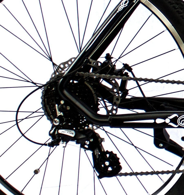 The Shimano 8-speed freewheel lets you pedal seamlessly on the steep climbs. The bike comes with dual disc brakes set at the front and rear, which allow great stopping power, ideally required by a bike in this class. So, your major safety concern has been resolved by the installation of powerful disc brakes. The bike uses 27.5 inch free wheels that allow you to enjoy a seamless performance while your bike is in motion.