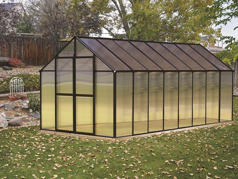 • Greenhouse kit: All Aluminum framework, all Polycarbonate panels, 1x set of double doors (assembled), and 2x roof vents with automatic openers