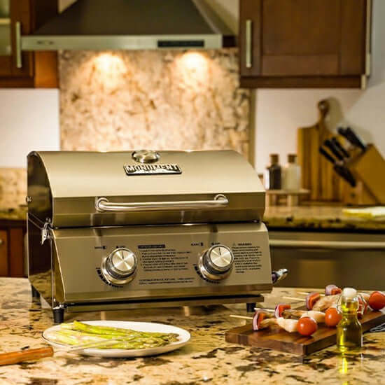 Monument Grills 13742 Stainless Tabletop Gas Grill 2 Burners Liquid Propane Gas