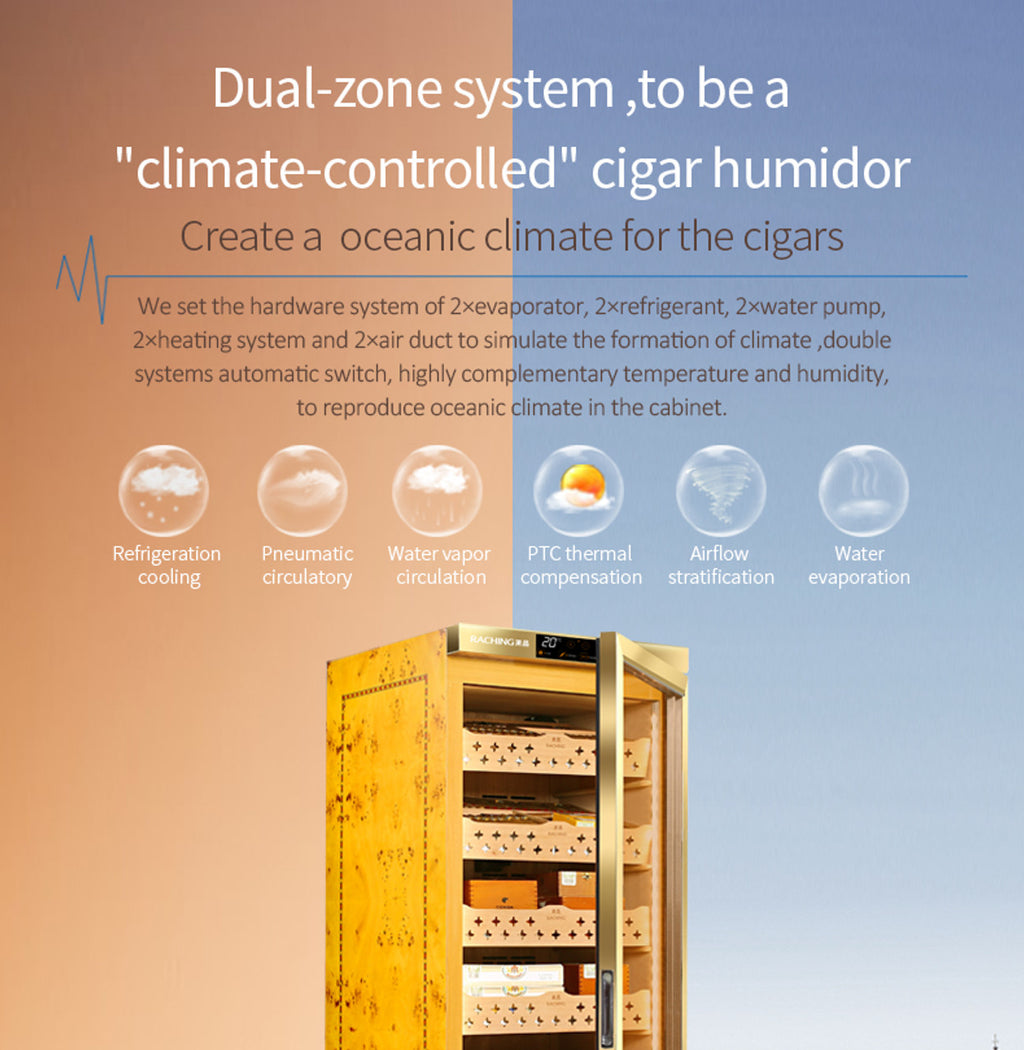 Raching has established itself in the high-end wine and cigar storage since 2004. They are dedicated to designing and building "smart cabinets" that control the internal climate so you can store and age your cigars perfectly. These electronic humidors are bought by cigar aficionados all over the world, from China to the Middle East, and from Europe to the United States.