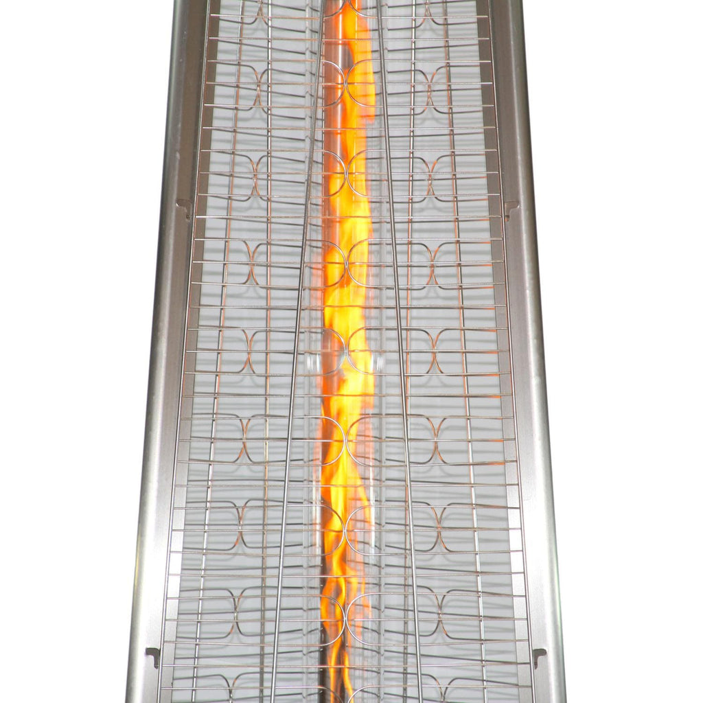 Our Pyramid Flame Heaters are designed to maximize comfort and style for customers who require a certain ambiance in their living space. Stainless Steel Finish and standing 7.75ft tall with a 4.5ft Fire Feature, this heater emits a warm glow fire feature which complements any outdoor space. High efficiency heating with output equal to 41,000 BTUs and natural gas consumption rated at 1.85 lbs/hour. All covered with a water resistance rating of IPX5 - built to last outdoors and resist the elements. Wheel Accessory Kit included for ease of mobility. First (1) Year Manufacturer Warranty included.