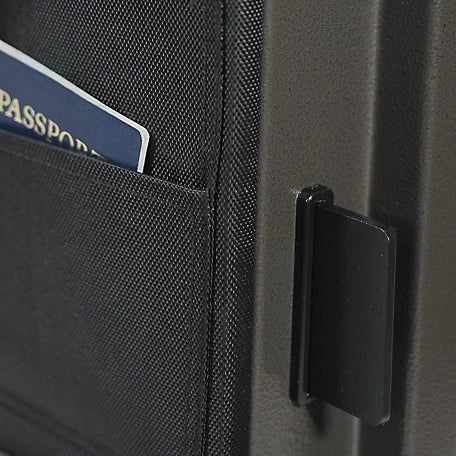 • Fully carpeted interior, to protect the finish of valuables, with two height-adjustable shelves, a pocket on the door, and four key hooks mounted on the door