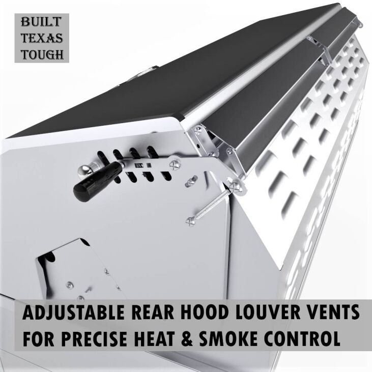 • Customize your grilling experience using the height-adjustable top tray, capable of accommodating whole wood pieces like Mesquite or Oak.