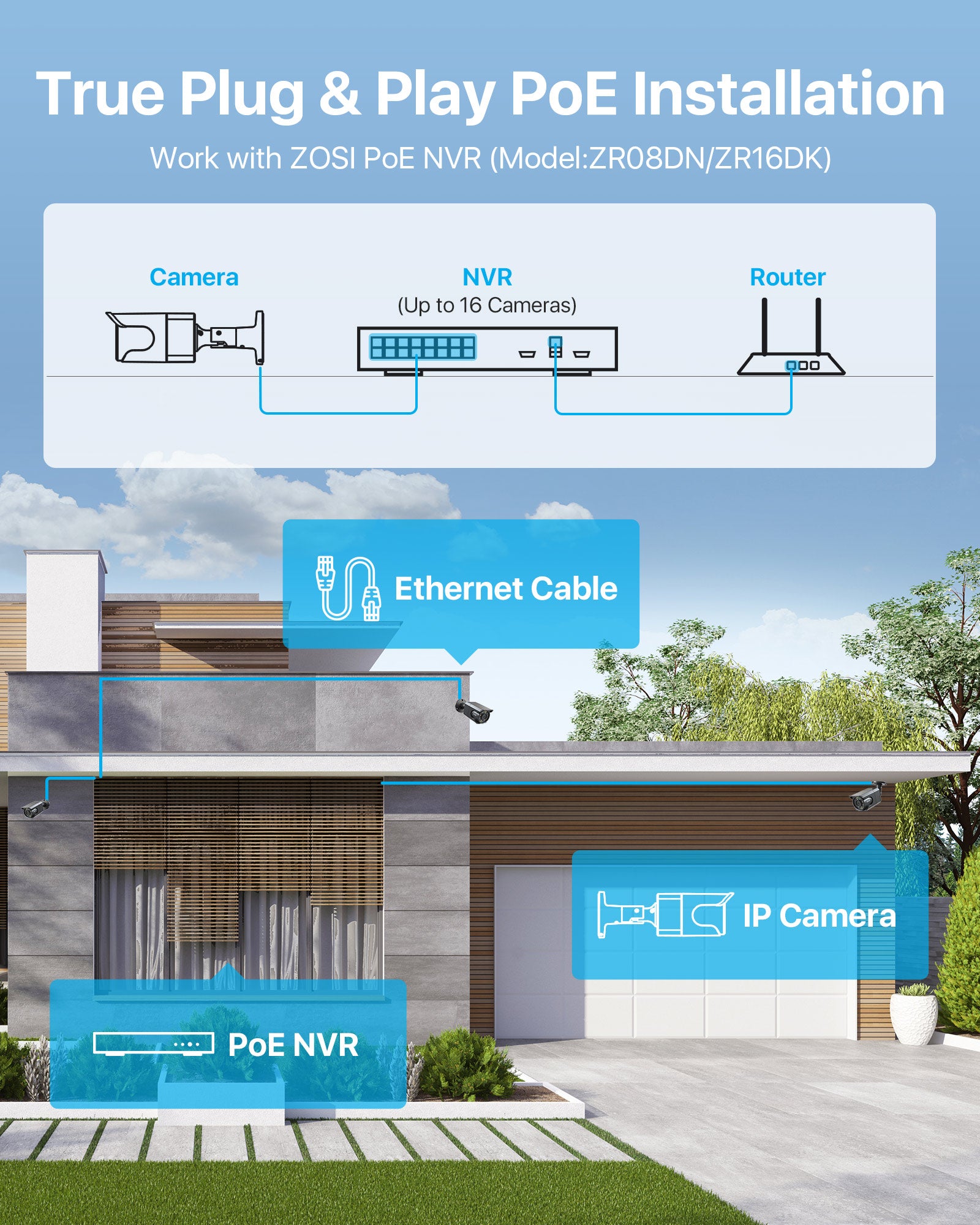 • Note: It cannot be used separately. It works with ZOSI PoE NVR(ZR08DN, ZR08SN, ZR08HN, ZR16DK, ZR16SK, ZR16HK).