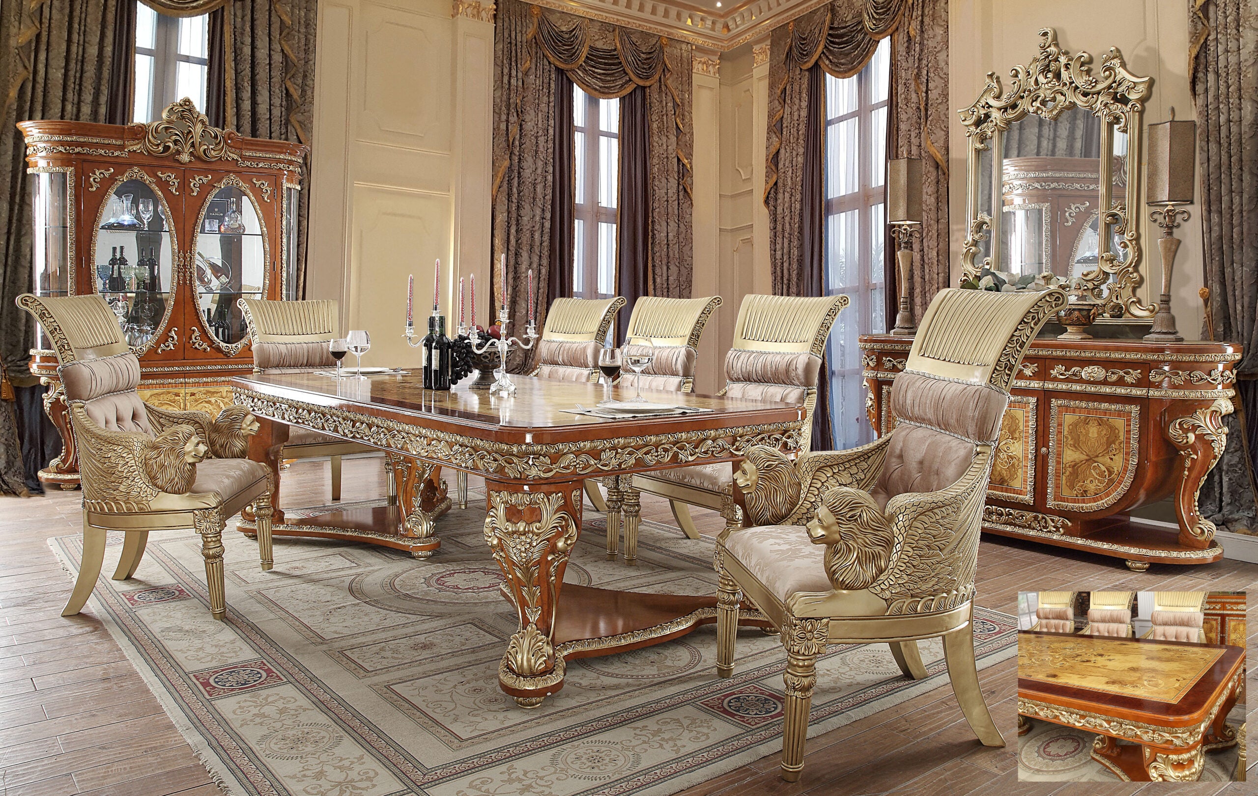 Homey Design Dining Table Set Gold & Brown HD-8011 – 7PC