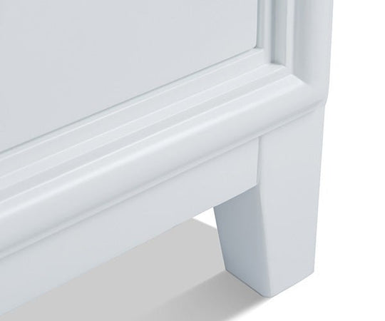 Simply beautiful with elegant lines. The Ellie Collection is a stylish and graceful transitional piece that will give any bathroom a chic yet warm and welcoming feel. Handcrafted to perfection, the Ellie was designed using quality wood and the most durable soft-close hardware on the market. No details were overlooked in crafting the Ellie. The vanity set includes a furniture style cabinet, imported Italian Cararra White marble top with a 4 inch backsplash, wide rectangular under mount basin, solid wood dovetailed drawer boxes, soft-close drawers and polished chrome hardware. Complete the look with our mirrors which are sold separately
