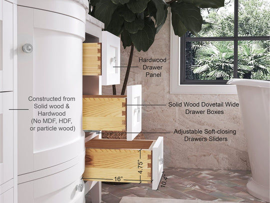 • Proprietary painting process to deliver a rich & smooth finish. We do not use the Nitrocellulose (NC) lacquer paint that is commonly found in other vanities. NC paint lacks depth and is susceptible to temperature changes, scratches, cracking, and color changes.
