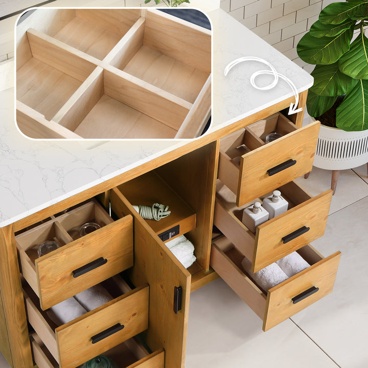 • 3 soft-closing drawers and 1 soft-closing door maximize your bathroom storage space.