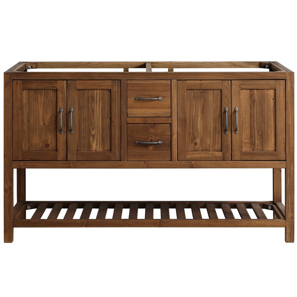 The Austin bathroom vanity cabinet by Design Element combines classic rustic charms with modern features. The cabinet is made from 100% reclaimed wood which is both durable and environmentally friendly. Each Austin vanity has its own unique history. The soft closed doors and drawers bring modern features to the vanity, while the included antique pewter metal hardware provides the perfect finishing touch. Vanity top, sink, faucet and drain are not included. *Due to the nature of reclaimed wood, each vanity may have distinct markings, knots, slight cracks, and uneven surfaces. These imperfections only add to the rustic beauty and will not hinder functionality. Adult assembly required.