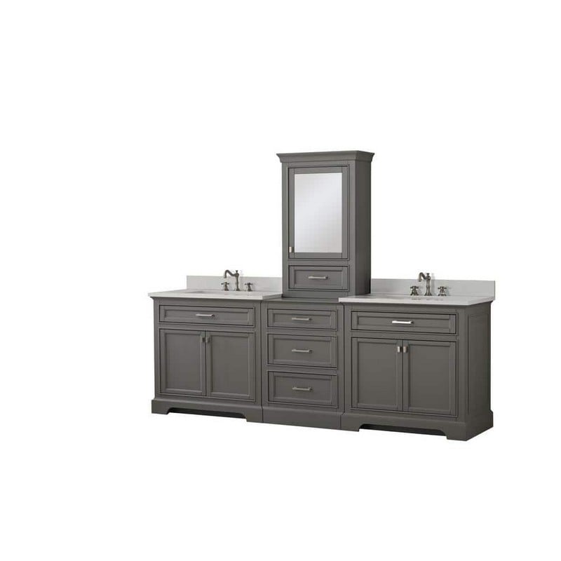 Design Element ML-96MC-GY Milano 96 Inch Modular Bath Vanity in Gray with White Quartz Top
