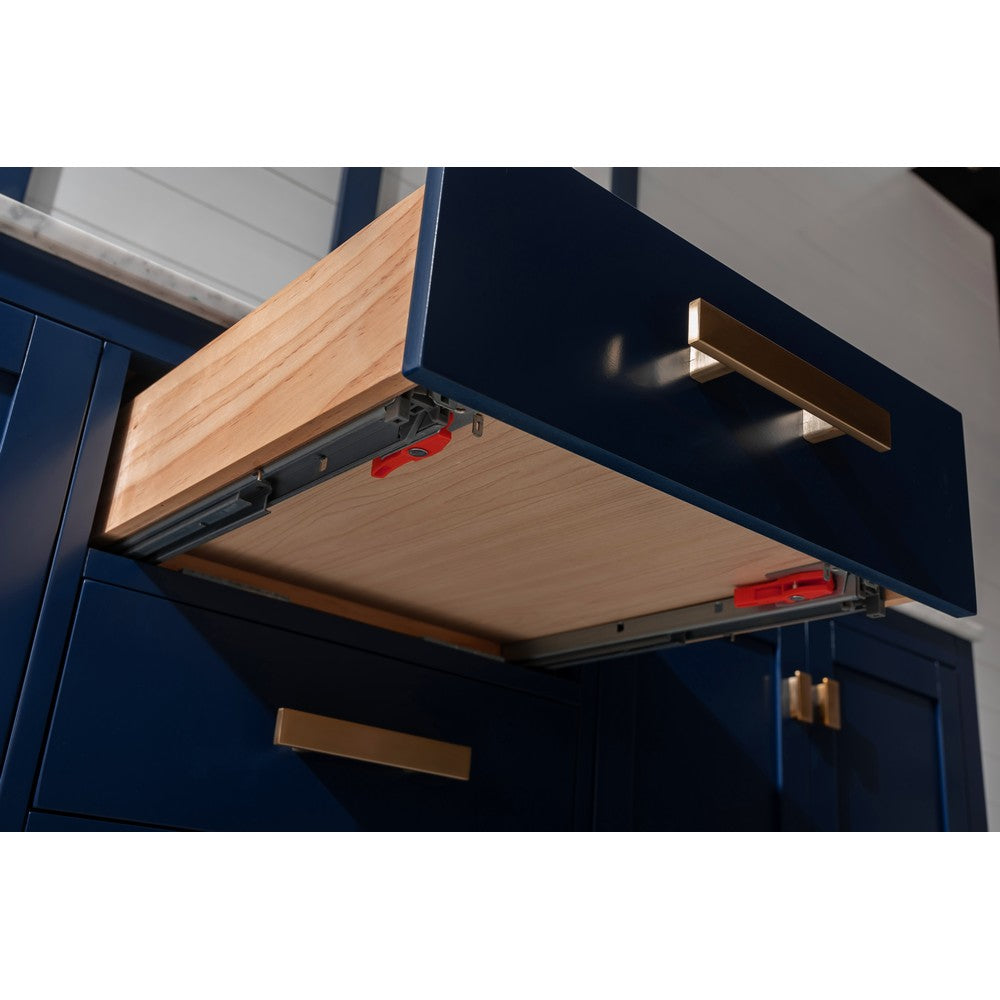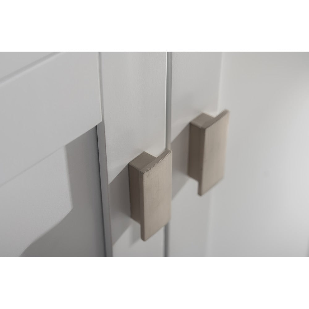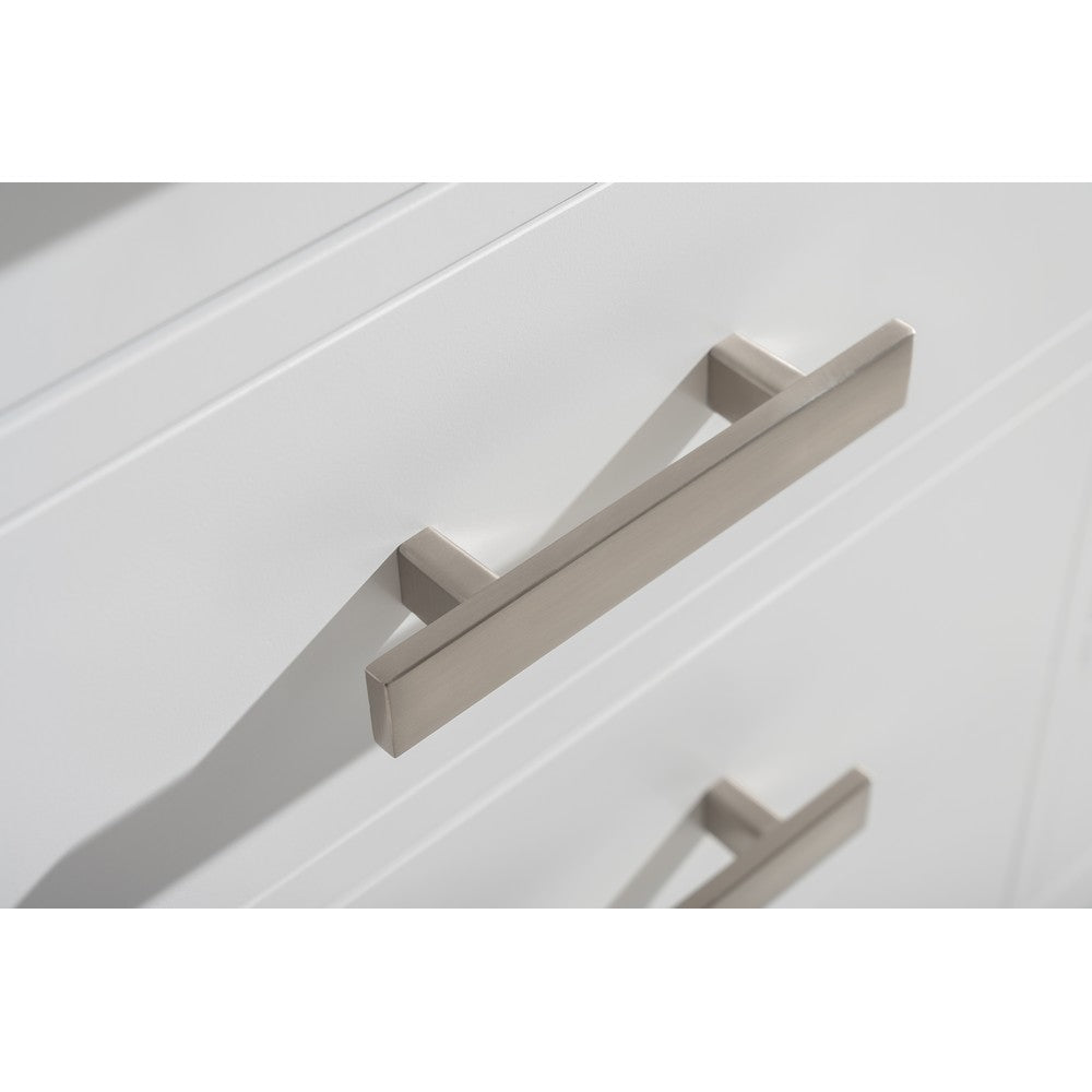 The Valentino vanity collection by Design Element combines modern elegance and functionality into a beautiful statement piece for your bathroom. All Valentino vanity cabinets are constructed from solid birch wood and MDF to prevent warping, and paired with a 1 Inch thick white quartz countertop and backsplash. Soft closing doors and drawers provide smooth and quiet operations, while brushed finished metal hardware provides the perfect finishing touch. Other fine details include a white ceramic sink with overflow, dovetail joint drawer construction, predrilled holes to accommodate 8 Inch widespread faucets, and multi-layer paint finish on the cabinets provide beauty and durability for years to come.