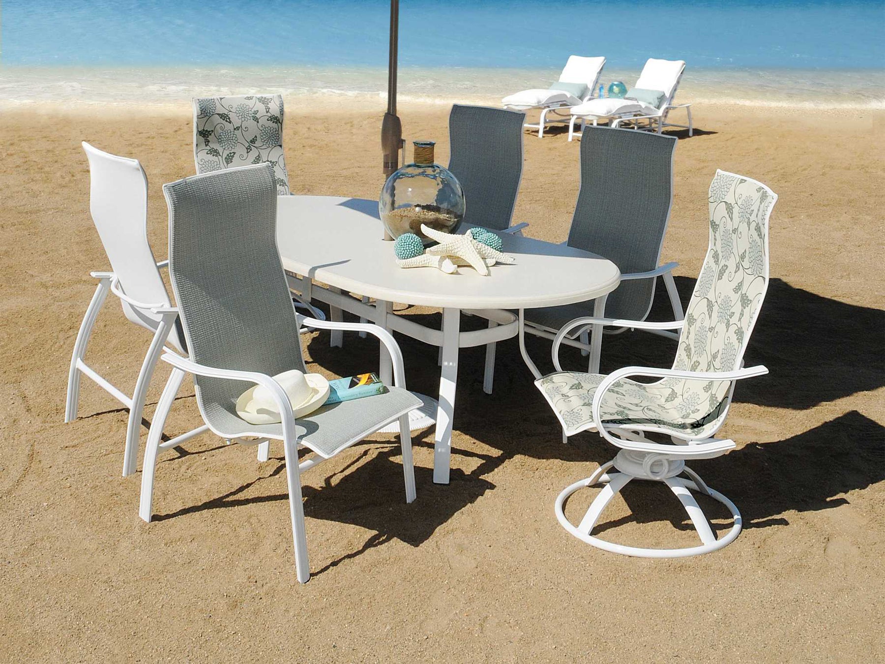 Homecrest Holly Hill Sling Aluminum High Back Swivel Rocker Dining Arm Chair