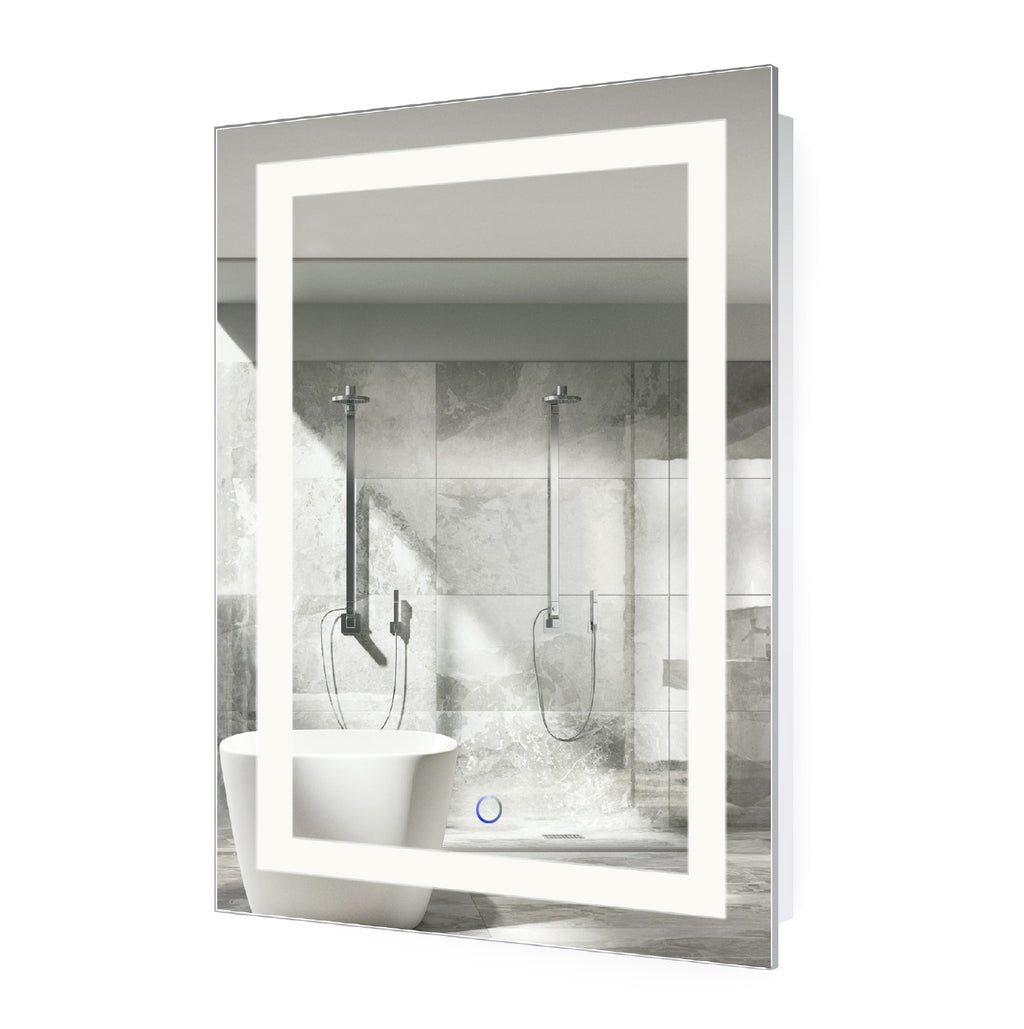 This lighted bathroom mirror is a true Icon of sleek, aesthetic style and sophistication. The highest quality silver-backed glass provides you with a clear, crisp and flawless reflection. Truly functional art, this LED Frontlit Mirror provides task-specific dimmable daylight illumination for your cosmetic, hygiene and dressing needs. Experience true luxury with our unique built-in defogger mechanism that maintains a fog-free mirror every time. This Icon’s 24 x 36 dimensions make it an ideal subtle accent for single, double or dual vanities. Whether you install it vertically or horizontally, it offers the flexibility to make your bathroom design uniquely exceptional. Eco-Friendly + Environmentally Responsible