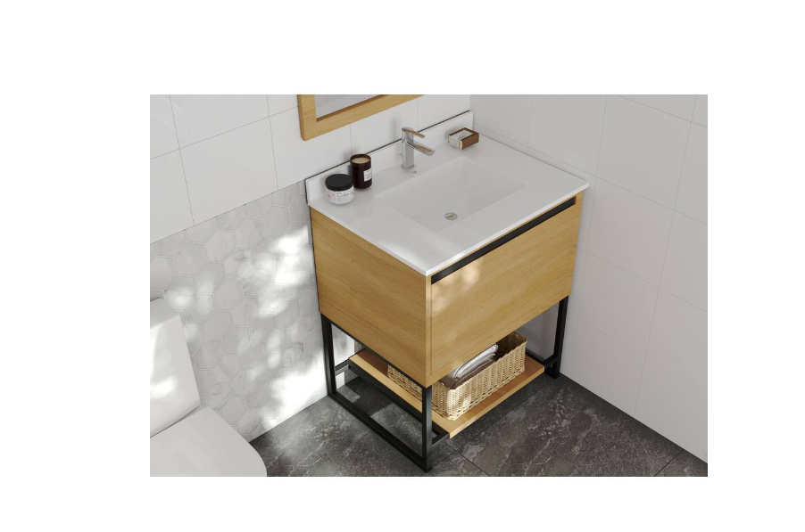 La Viva Alto 30 in. W x 22 in. D x 35 in. H Bathroom Vanity in California White Oak with White Quartz Top 313SMR-30CO-WQ