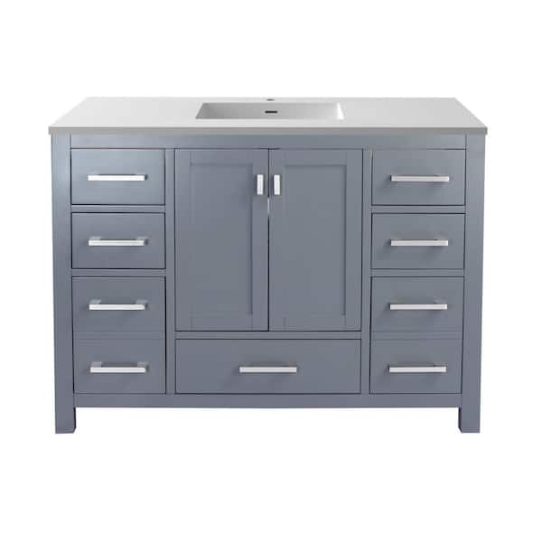 La Viva Wilson 48 in. W x 22 in. D x 34.5 in. H Bathroom Vanity in Grey with Matte White Solid Surface Top 313ANG-48G-MW