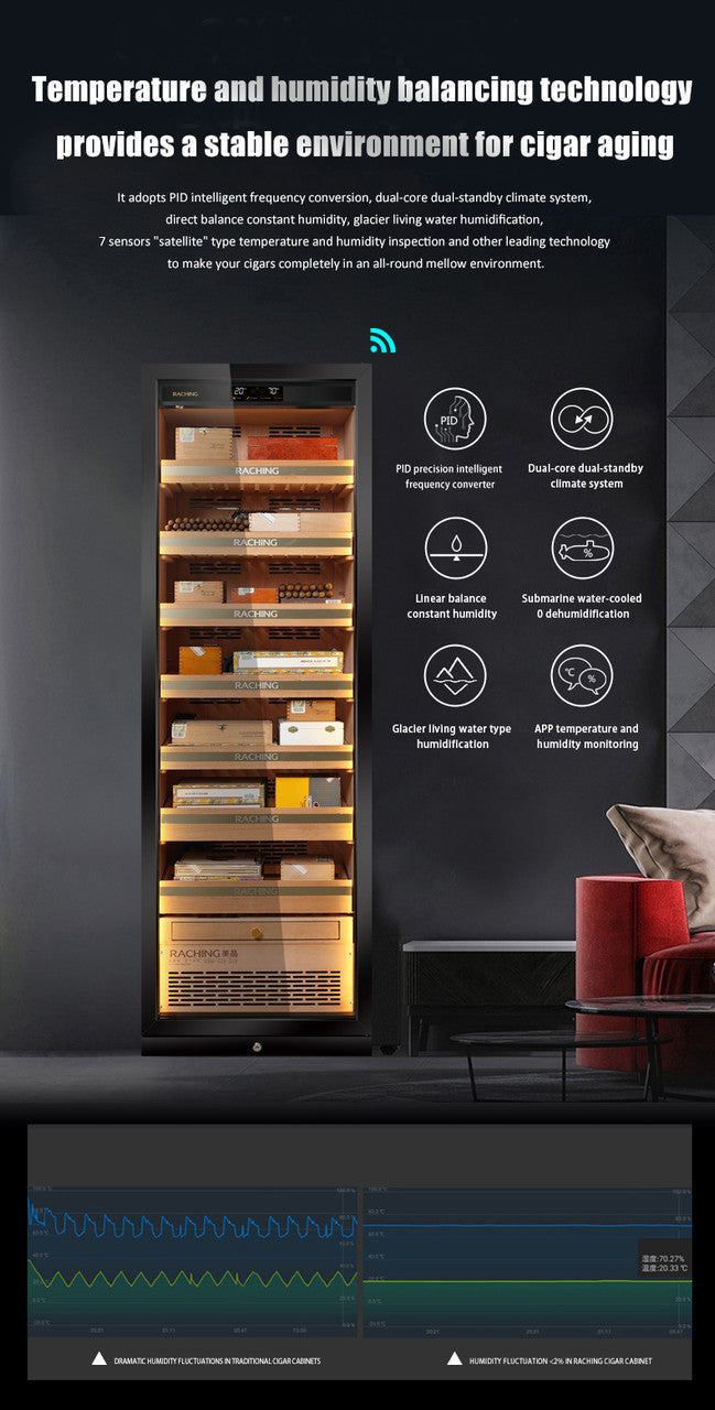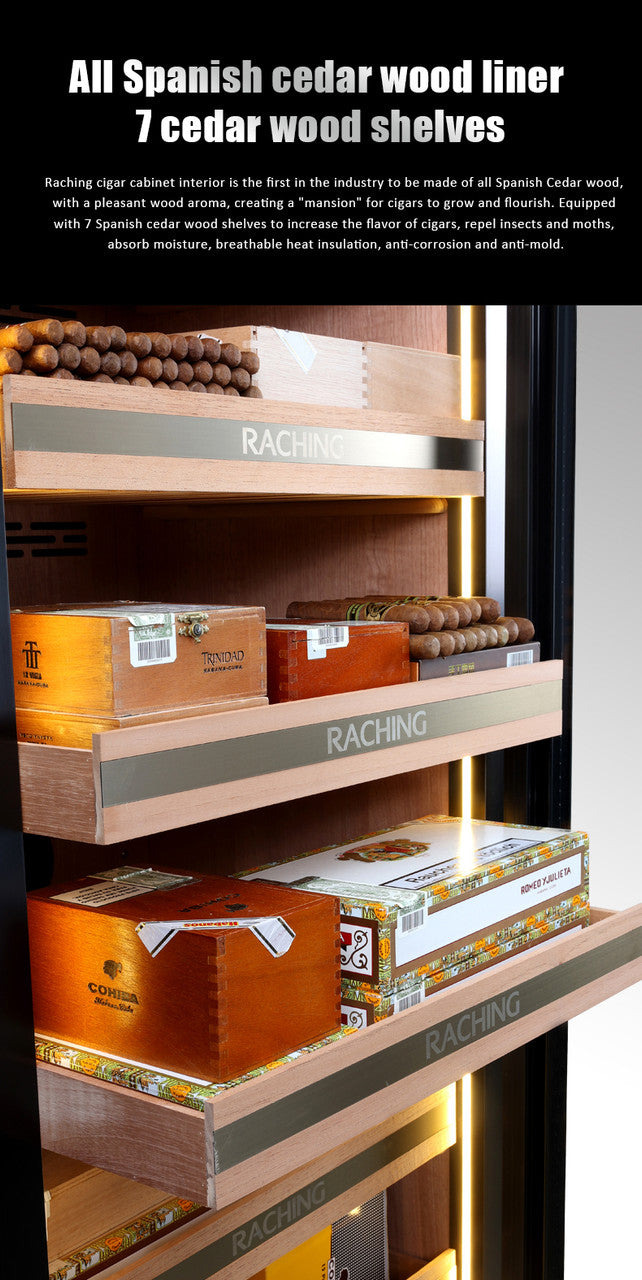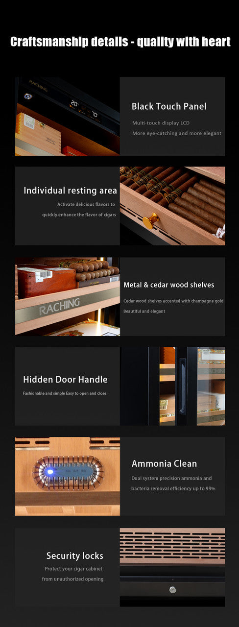 Raching has established itself in the high-end wine and cigar storage since 2004. They are dedicated to designing and building "smart cabinets" that control the internal climate so you can store and age your cigars perfectly. These electronic humidors are bought by cigar aficionados all over the world, from China to the Middle East, and from Europe to the United States.