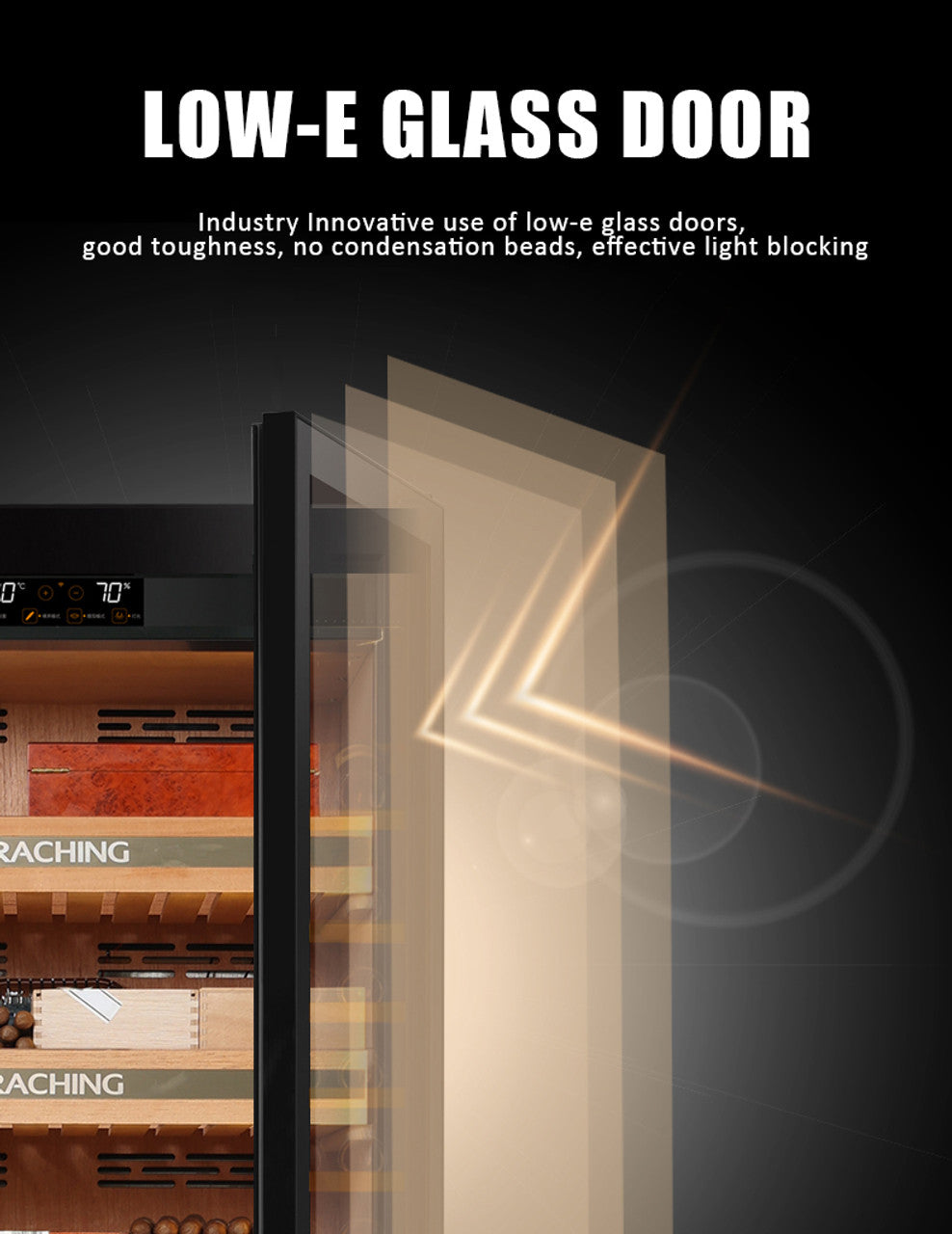 This is a climate controlled system with built-in humidity, fan cooling, heating & dehumidification system. You can easily achieve the 70% humidity and 70F degress temperature you want (or any variation of that). Simply set the number you want on the exterior LCD panel, and then the cabinet will monitor and keep the inside temperature and humidity as you set it. With this smart cabinet you will be able to store your cigars like a professional.