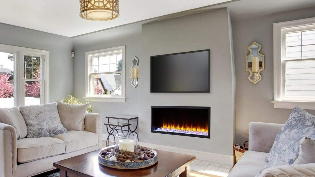 • Install nearly anywhere without the need for gas lines or venting. Safely place a TV or artwork directly above the fireplace.