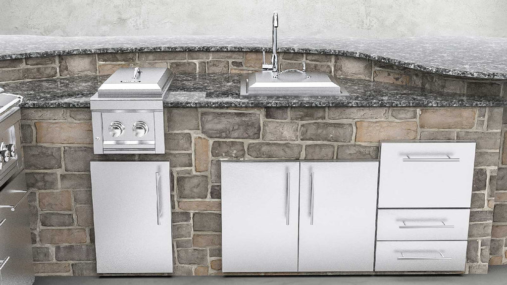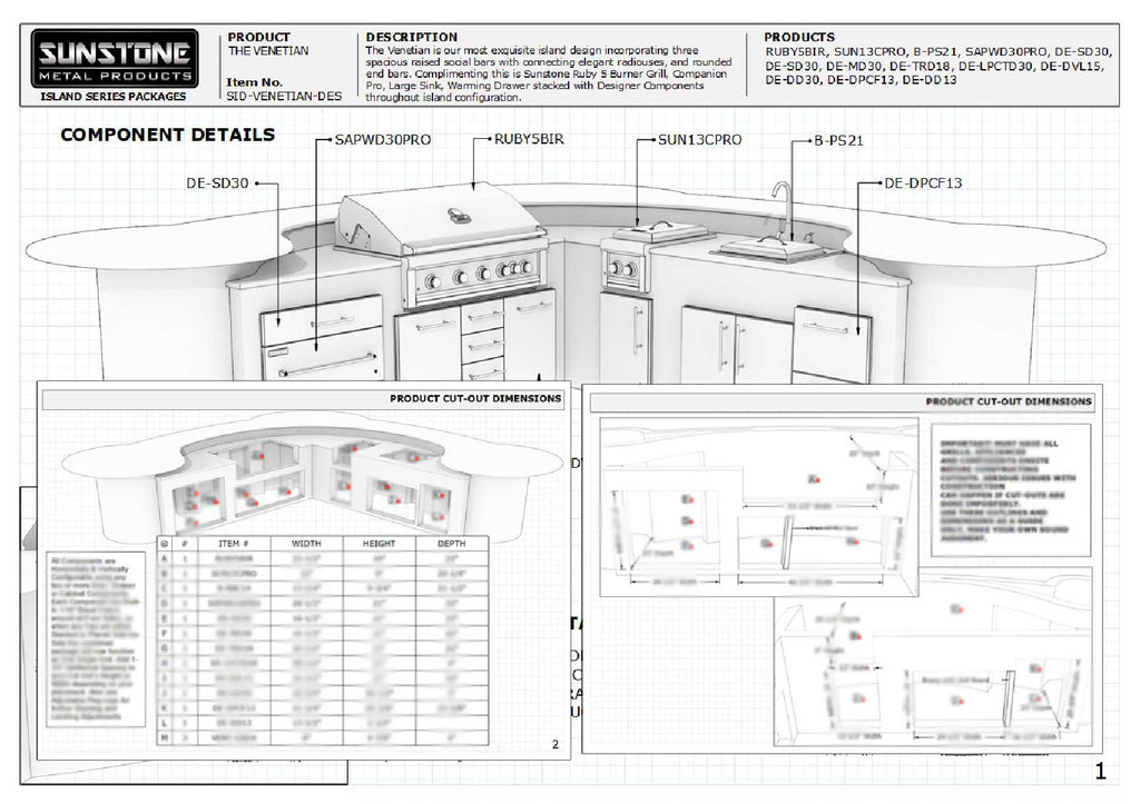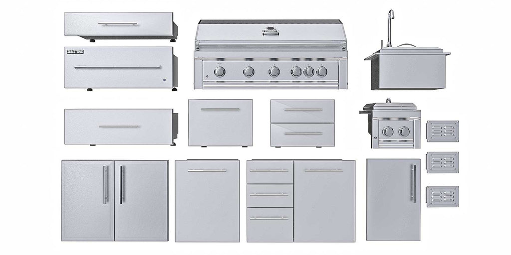 • Includes Sunstone 5 Burner Grill, Companion Pro Grill, Warming Drawer, Premium Sink and Designer Components