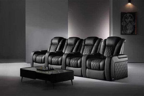 The wall hugging recliner mechanism allows you to fully recline while keeping the seats close to the wall. This design saves the unnecessary space behind the seat to maximize the usage of your home theater.