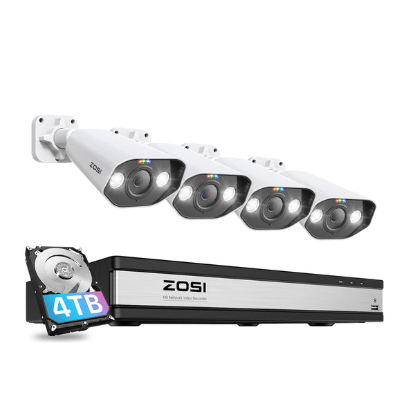 Zosi C182 4K 16CH 4 Camera Spotlight PoE Security System + 4TB Hard Drive