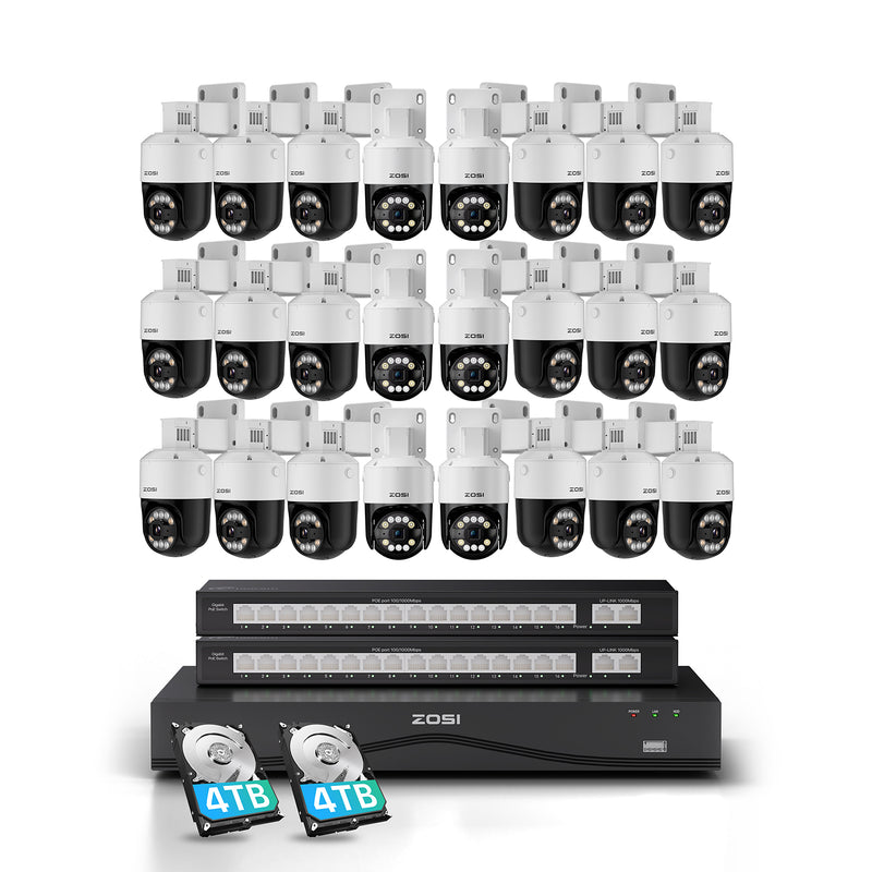 Zosi C296B 32 Channel 4K PT PoE Security Camera System for Business +Up To 16TB HDD