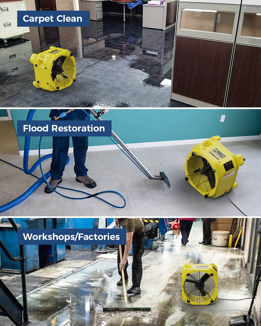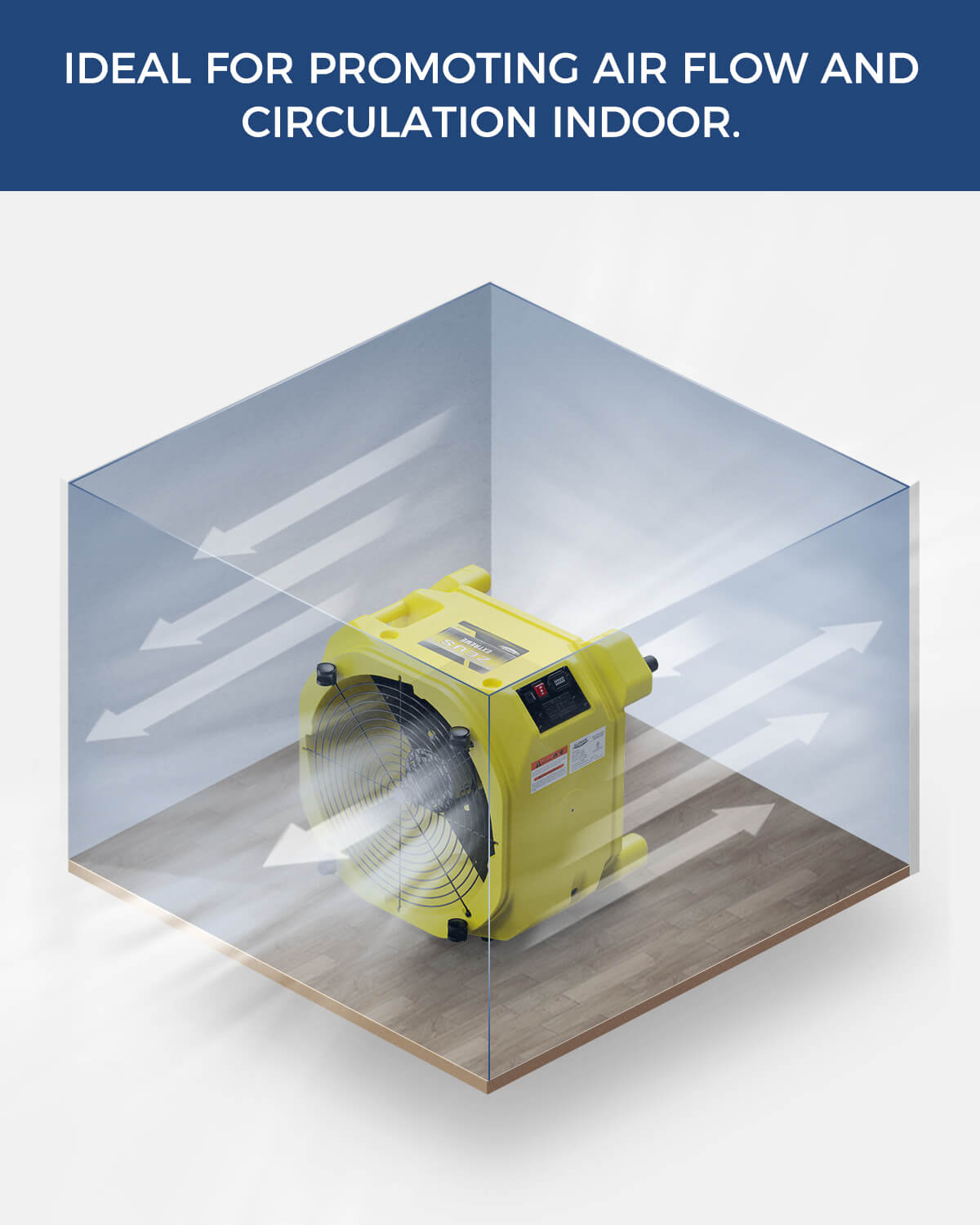 This, along with all our air movers, is a reliable tool in expediting the evaporation process of dehumidification as it moves the liquid away from the affected surface to immediately turn it into its gaseous phase, hence evaporation. It does not necessarily dry the air, but it circulates it which makes it easier for the dehumidifier to grasp the humid air and extract the excess moisture, which would ultimately produce dry air.