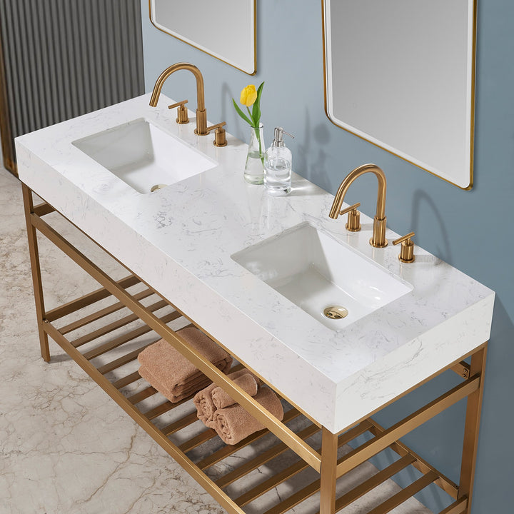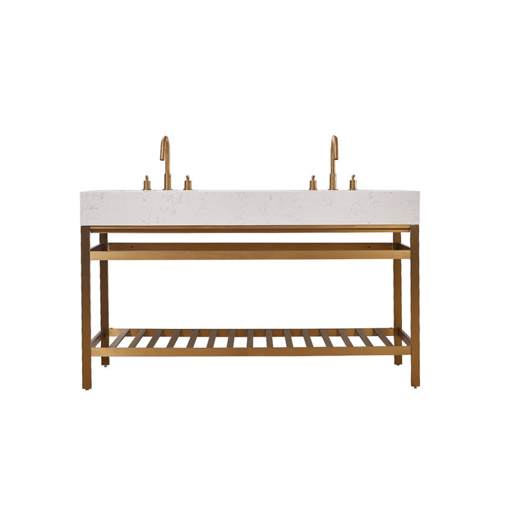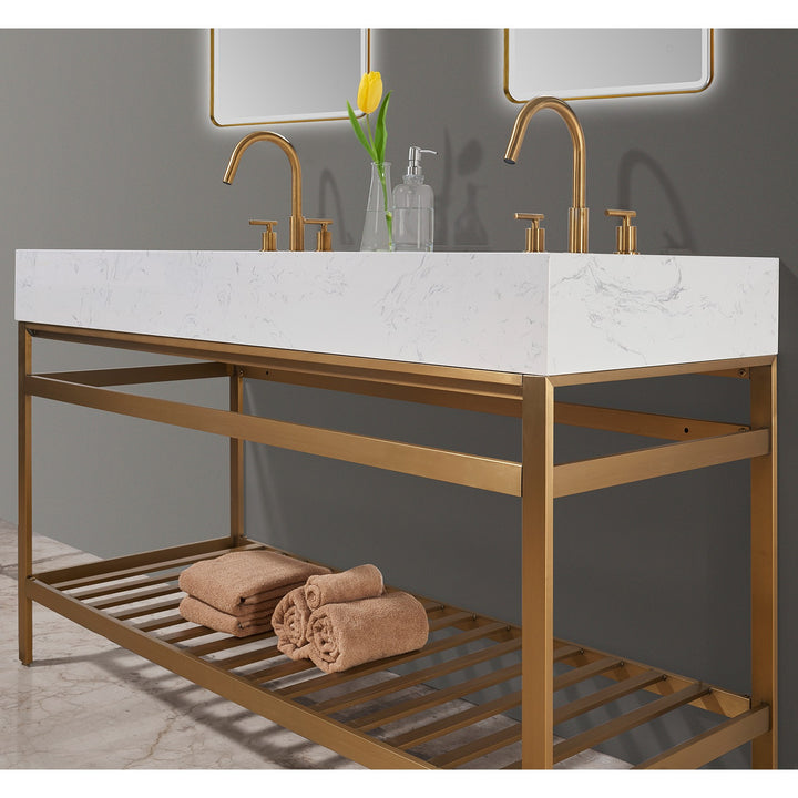 Altair Merano 60" Double Stainless Steel Vanity Console with Aosta White Stone Countertop 68060-AWAP-BG