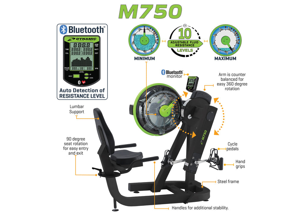 The M550 Fluid Rower is Dynamic Fluid Fitness’s champion fluid rower designed for the health club or commercial gym environment. The fluid rowing machine’s shorter length, higher seat and rugged performance ensure a robust performance, perfect for any fitness level.