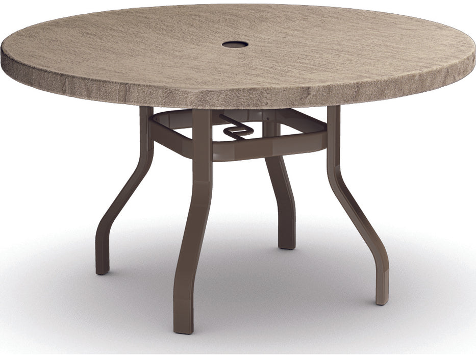 Homecrest Slate Aluminum 48'' Round Dining Table with Umbrella Hole