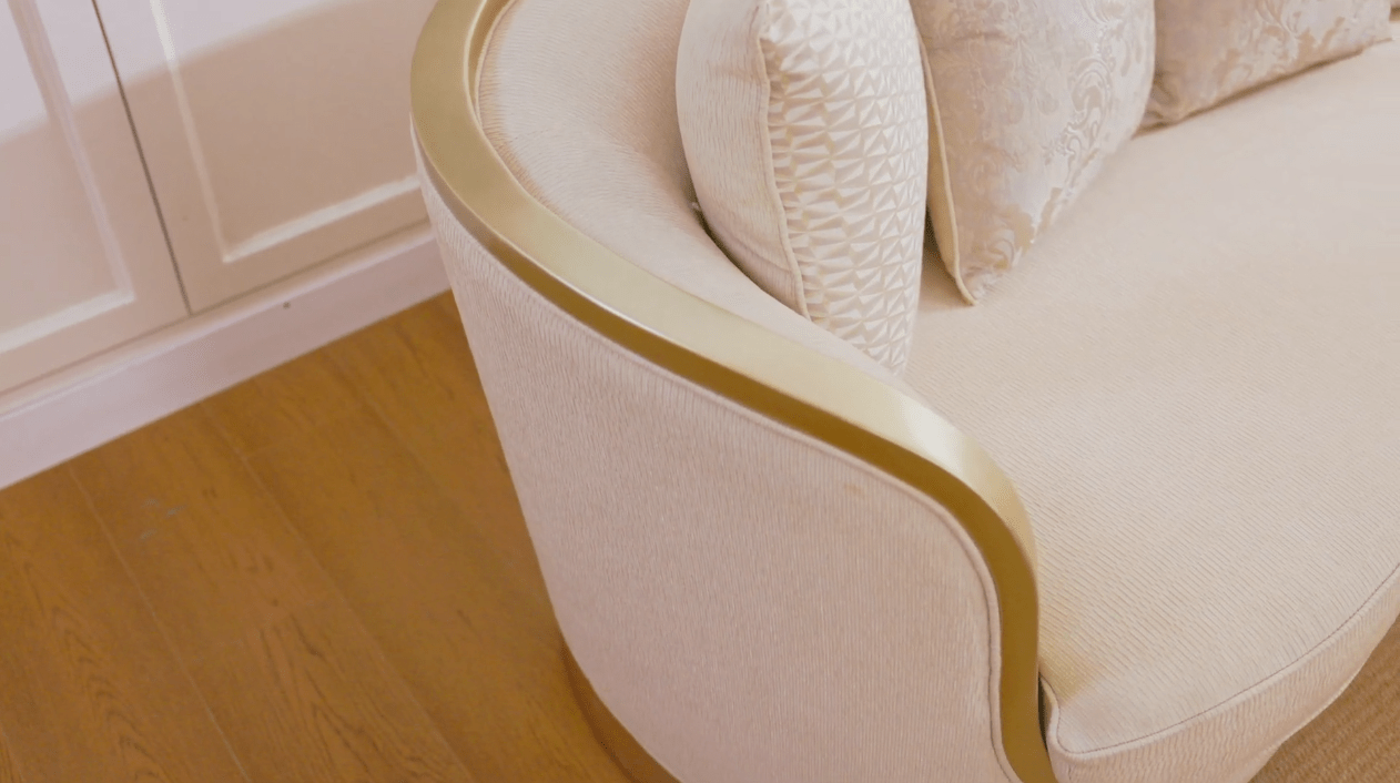 The HD-7006 3PC Sofa Set transforms living spaces with its elegant blend of contemporary flair and timeless sophistication. This luxurious set includes a sofa, loveseat, and chair upholstered in high-quality beige fabric and accented with a sleek metallic gold frame. Gently curved silhouettes and plush, neutral cushions offer both comfort and refinement, making it ideal for formal and casual settings. Balancing elegance and practicality, the HD-7006 3PC Sofa Set is a statement piece that enhances any home’s décor.