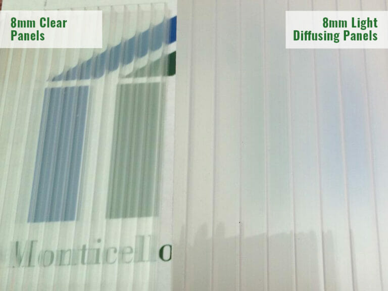 • Glazing material: Light-diffusing 8 mm twin-wall Polycarbonate on roof and walls