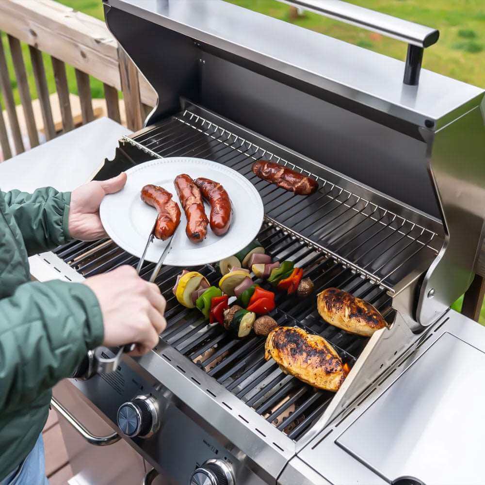 The Monument Grills 24367 model, with its spacious 510 square inch cooking area and powerful 72,000 BTU heat output, can quickly and evenly cook a variety of foods. Its multifunctional burners and grilling zone design allow it to accommodate up to 35 hamburgers or 32 chicken thighs at once. The sturdy lid and blue LED control knobs not only ensure a stable cooking temperature but also add a special ambiance to your grilling experience.