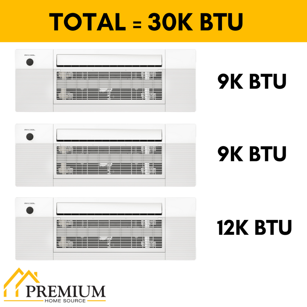 MRCOOL DIY Mini Split - 30,000 BTU 3 Zone Ceiling Cassette Ductless Air Conditioner and Heat Pump with 50 ft. Install Kit, DIYM336HPC01C74