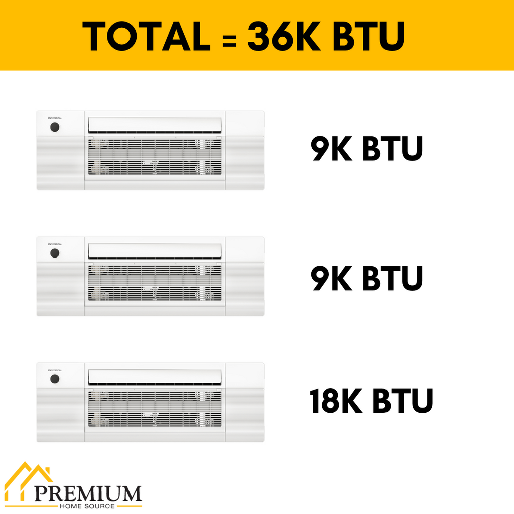 MRCOOL DIY Mini Split - 36,000 BTU 3 Zone Ceiling Cassette Ductless Air Conditioner and Heat Pump with 50 ft. Install Kit, DIYM336HPC02C74