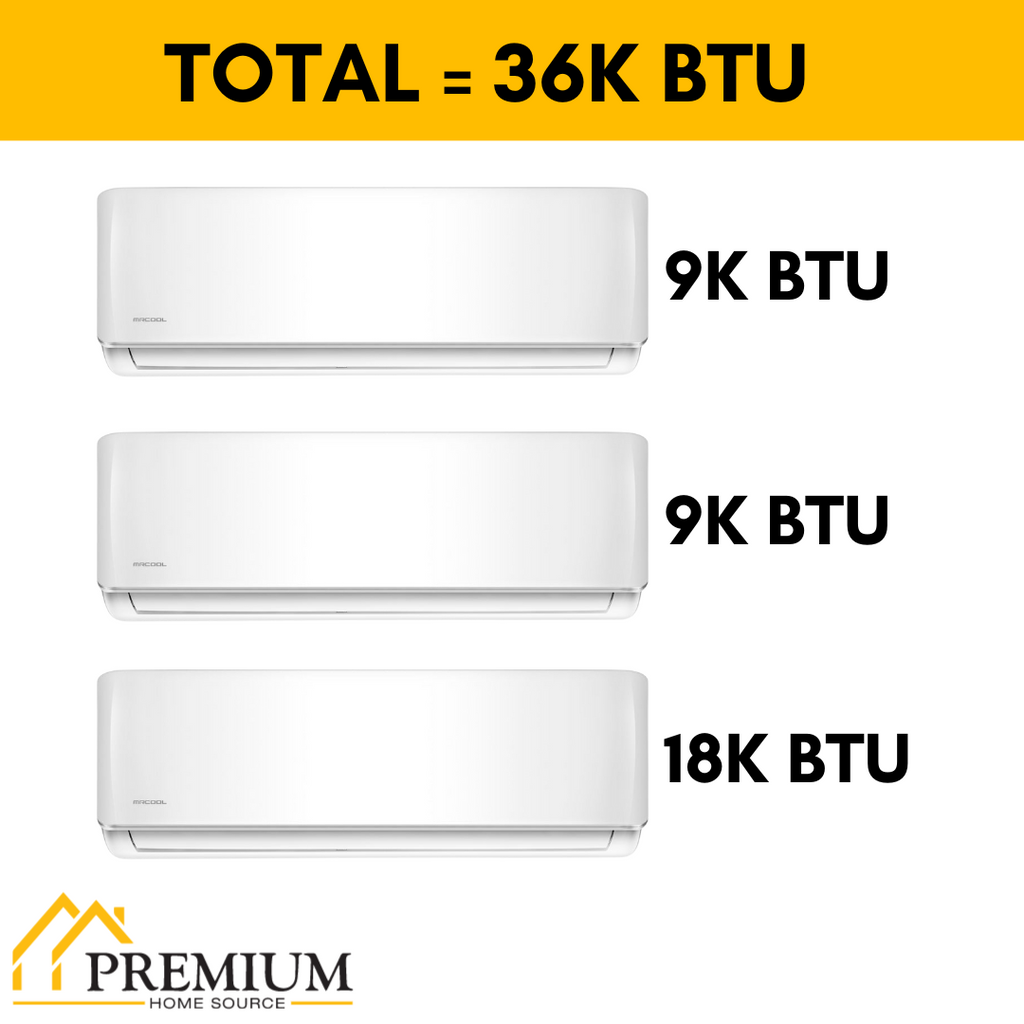 MRCOOL DIY Mini Split - 36,000 BTU 3 Zone Ductless Air Conditioner and Heat Pump with 16 ft. Install Kit, DIYM336HPW02C00