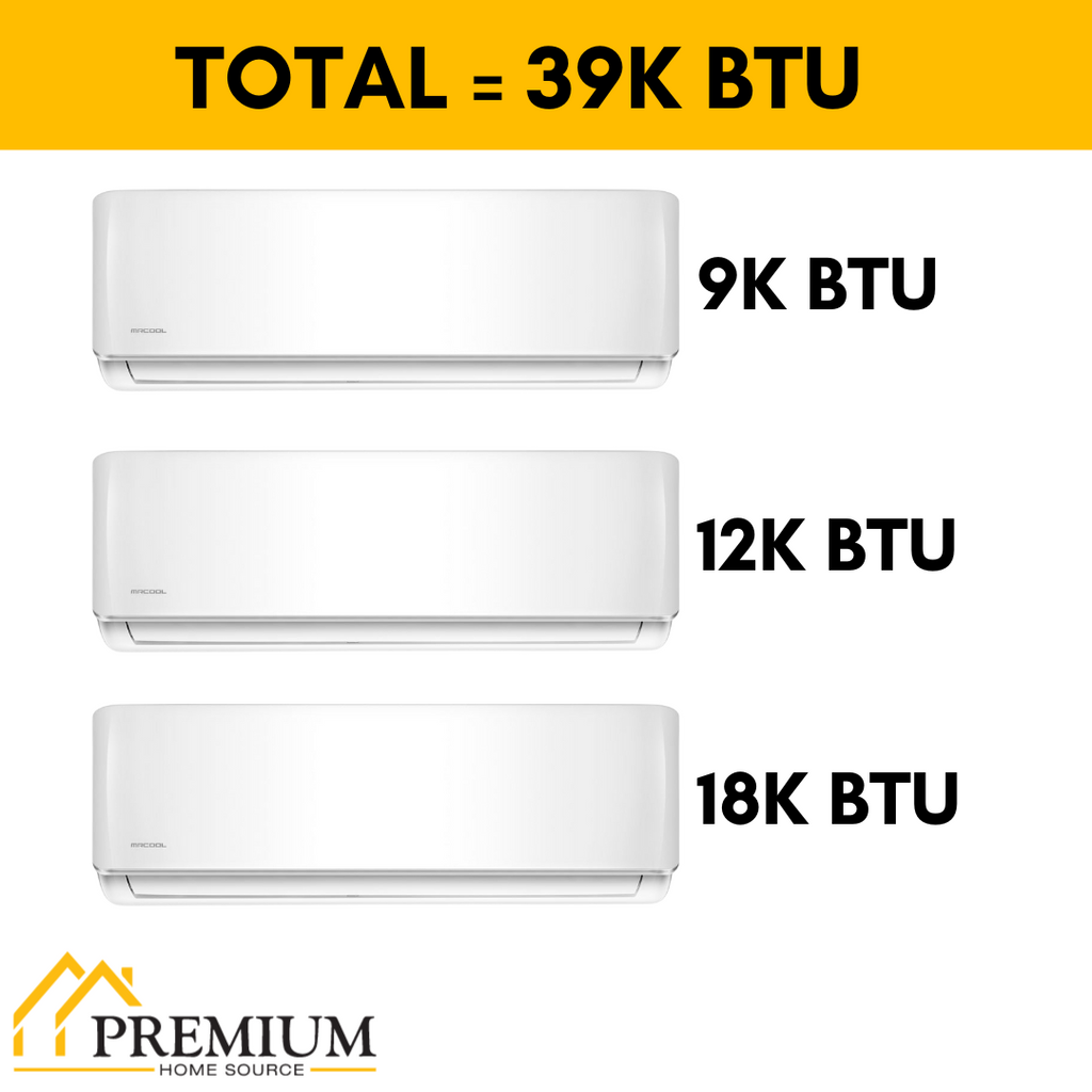 MRCOOL DIY Mini Split - 39,000 BTU 3 Zone Ductless Air Conditioner and Heat Pump with 50 ft. Install Kit, DIYM336HPW05C74
