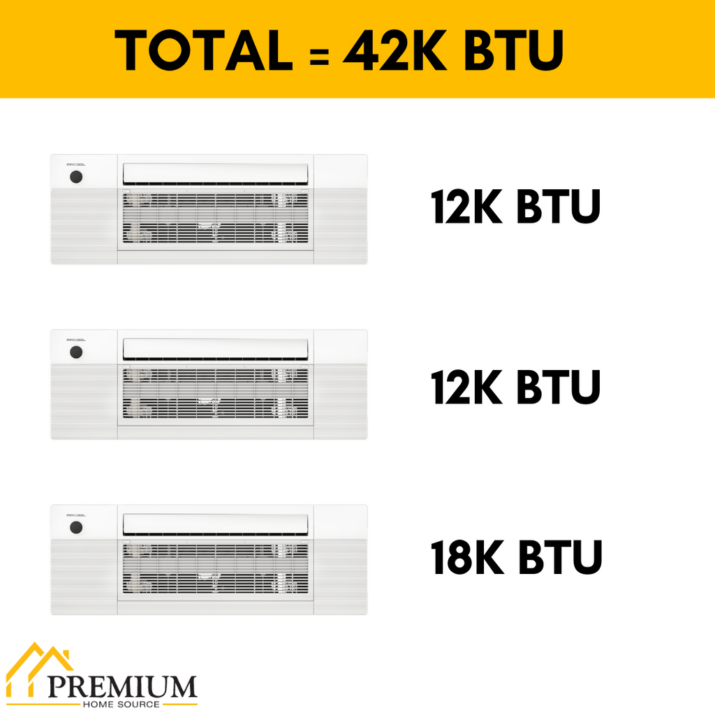 Please refer to this coverage chart to determine how many BTUs are required for the area you would like to cool or heat.