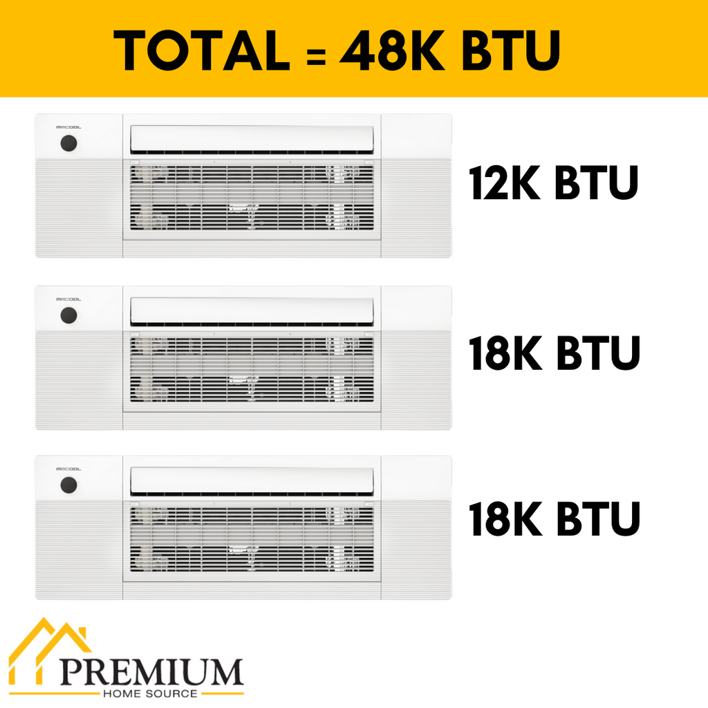 MRCOOL DIY Mini Split - 48,000 BTU 3 Zone Ceiling Cassette Ductless Air Conditioner and Heat Pump with 50 ft. Install Kit, DIYM348HPC01C74