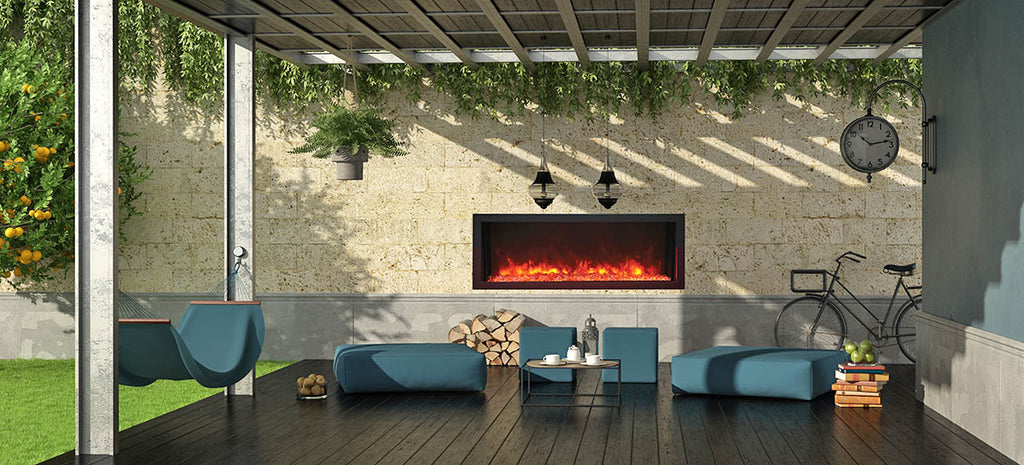 Remii Extra Slim Indoor or Outdoor Built-in only Electric Fireplace with black steel surround