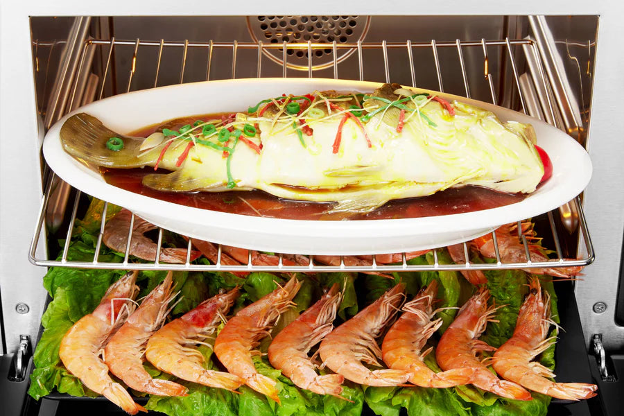 • SEVEN COOKING MODES: This state-of-the-art steam oven can be used to steam, grill, defrost, warm, ferment, steam and grill at once, and traditional convection baking. Unlimited dishes from pizza to steam fish to grilled chicken wings can be made with this oven