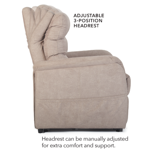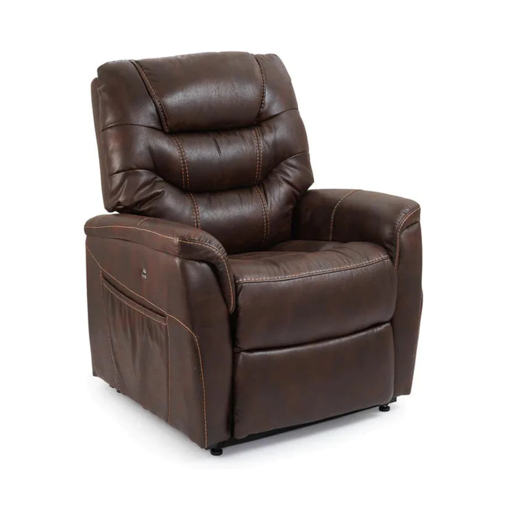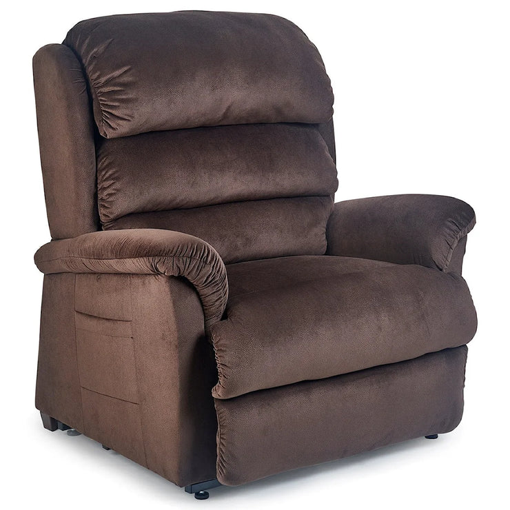 Take a vacation from your busy day with the Destin by UltraComfort. This power lift recliner provides style and comfort with a tailored seam back, plush chaise pad and easy-grip armrest. For extra comfort and convenience, this model is available in a medium or large size, both offering a manually adjustable headrest support and a USB charging port for your smartphone or tablet. Recharge your body and mind in this handcrafted recliner by UltraComfort.