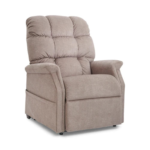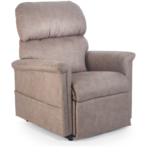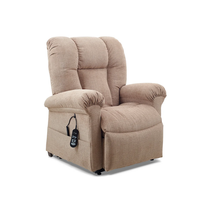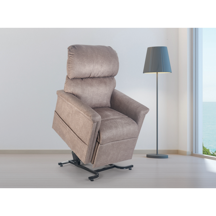 This lift and recline chair comes standard with an overstuff ed seam back and our heater/vibrating massage unit. Featuring a full chaise pad for comfort and leg support, The PL340 has a 375 lb. weight capacity and is ideal for someone 5’4” to 5’10”